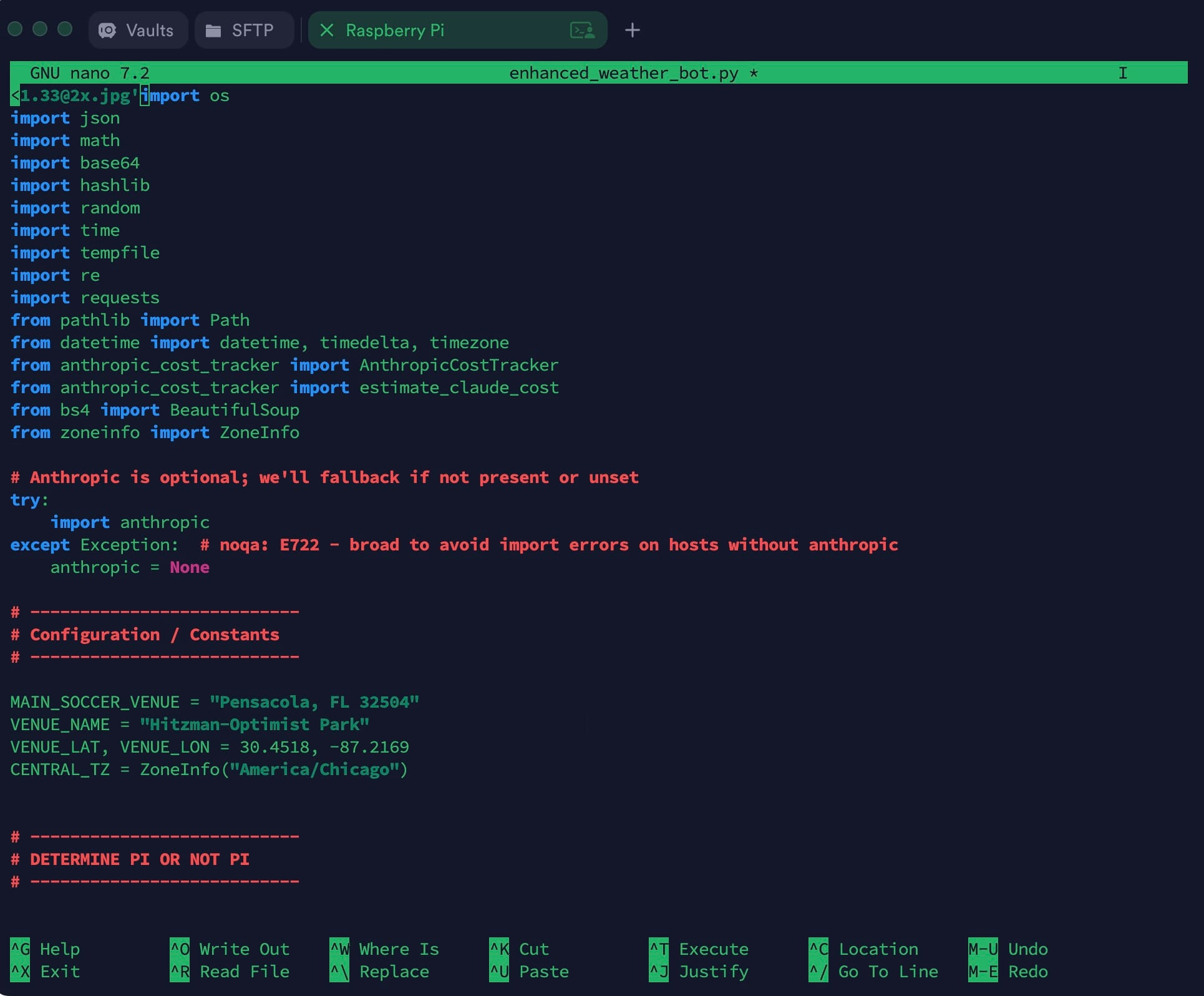 So “we” started this project directly on the Raspberry Pi. But copying and pasting from Claude directly into the Nano texts editor — if you’re old enough, think word processor from the mid-1980s — is awful. (And I can’t bring myself to learn Vim.) So at some point I had the great idea to complicate things even further and finally learn GitHub to manage all these files “we” were creating, and manipulate the actual code in the VS Code app.